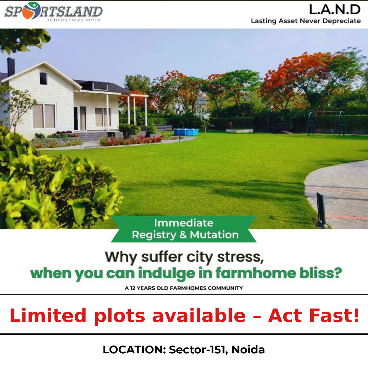 Sports Land Farmhouse in Sector 151, Noida, is a premium gated community offering open land farmhouse plots at an affordable price. Located in a prime area, this project provides a perfect blend of luxury, nature, and modern amenities, making it an ideal investment for homebuyers and nature lovers.